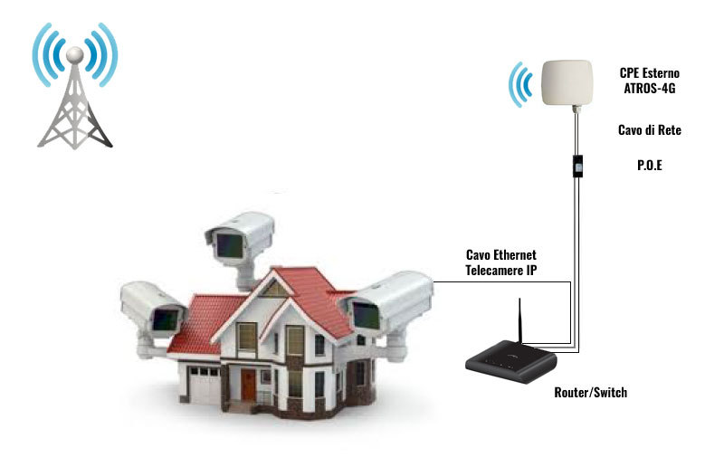 È un modem 4G/LTE e router per cavo Ethernet: il SOLO cavo di rete lan collega la CPE Atros-4G.